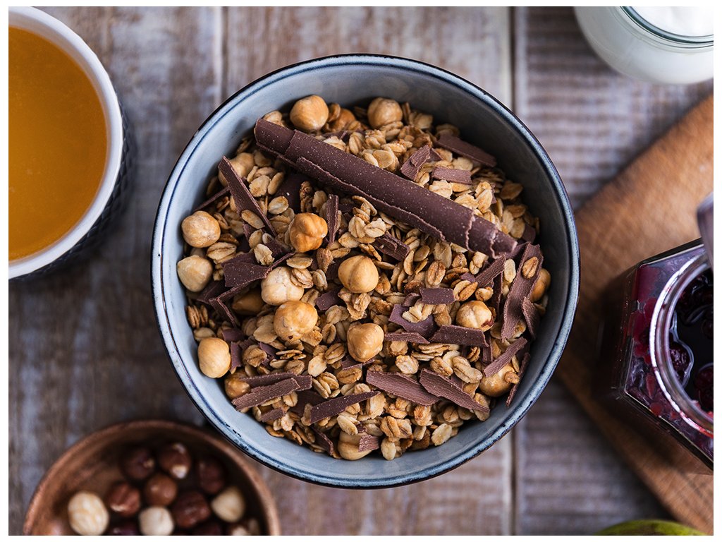 Lieskové oriešky a čokoláda granola