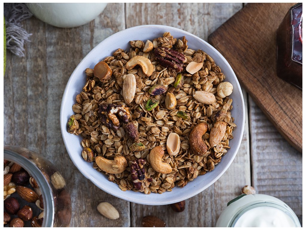 V našej najobľúbenejšej granole tvoria orechy 35 % z celkového zloženia. Nešetrili sme na nich! Či už si ju dáte s jogurtom, mliekom alebo len tak do ruky, môžete sa tešiť na veľkú porciu: